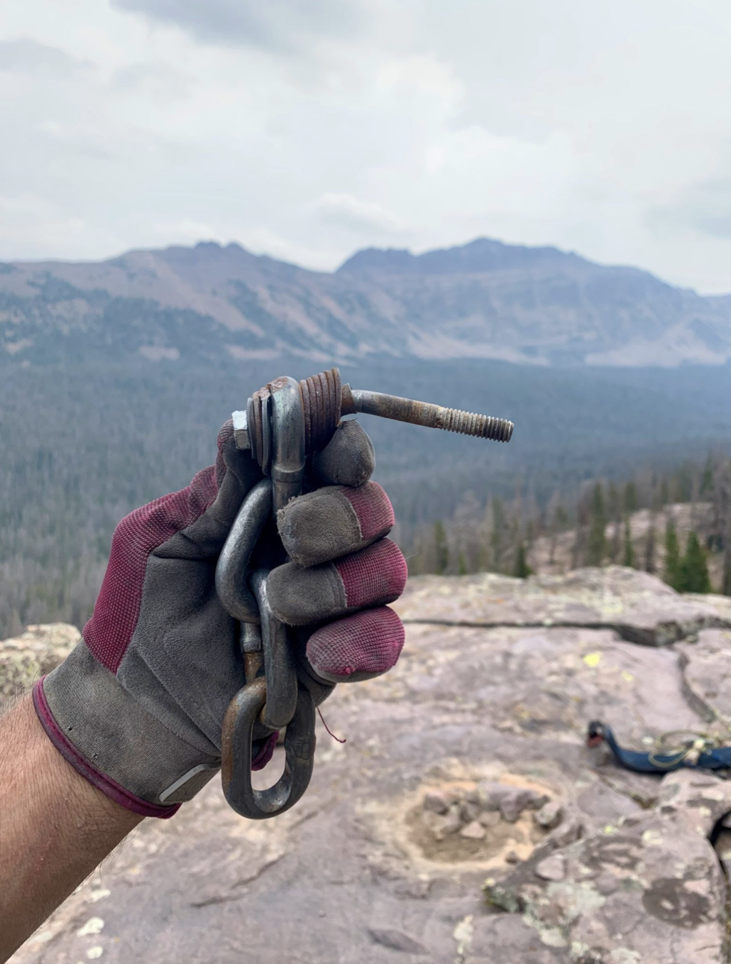 Most of the climbing anchors are in pretty good shape, shifting the SLCA’s task here from full-on replacement to a process for inspection and long-term maintenance. Quartzite can almost polish when drilled, so it’s not uncommon to find either spinning or loosening bolts (both studs and sleeves) in the Uintas - especially at sharp rope direction changes.